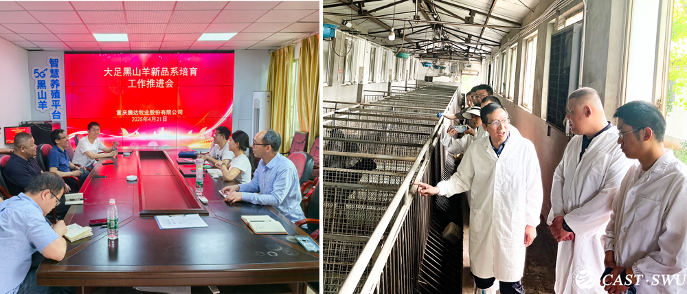 当日上午,专家团队赴国家大足黑山羊保种基地实地考察,围绕大足黑山羊新品系培育展开研讨,重点就性能测定、遗传评估等方面进行了深入交流,为推进大足黑山羊高繁新品系培育提供了重要技术参考。